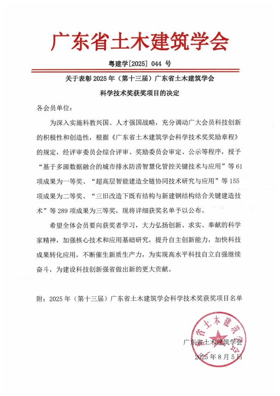 • 我司獲授予“2024年度廣東省土木建筑科技創新先進企業”光榮稱號 2025-05-09